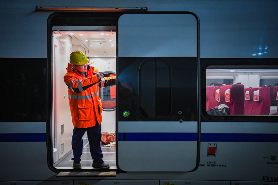 但真正的考验永远在突发故障现场,2020年大雪除夕夜的抢修经历,至今仍深深烙印在他心中。当时头车玻璃突发破损,新车型缺乏处理经验,零下5至10摄氏度的严寒中,他和班组全员放弃团圆,在工长“多抢修一小时,就能确保千余人正常出行”的鼓励下,顶着风雪奋战整夜,用坚守换来了旅客的平安归途。