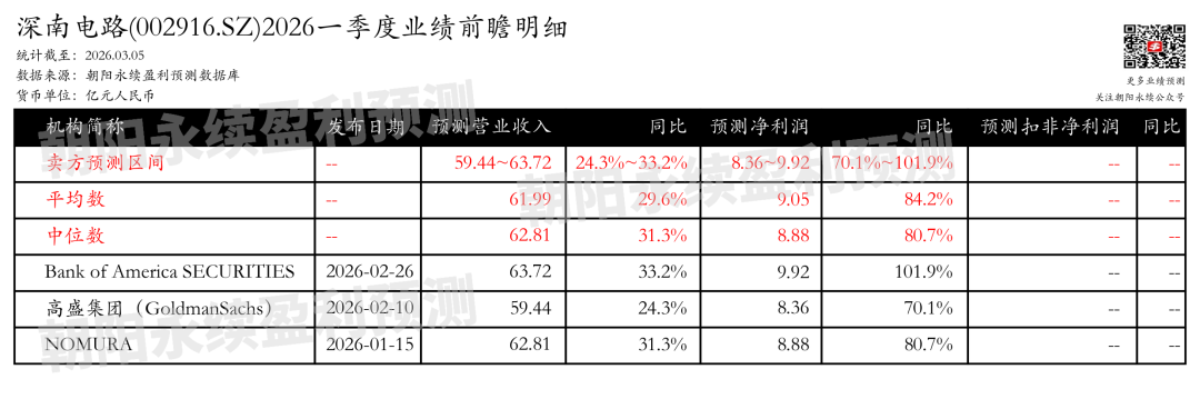 1. 深南电路一季度事迹预期若何样?鸿沟2026年03月05日,左证向阳永续季度事迹前瞻数据: