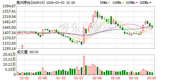 贵州茅台3月20日大量交往平台出现一笔成交,成交量0.20万股,成交金额288.53万元,大量交往成交价为1442.65元,相对当天收盘价折价0.16%。该笔交往的买方生意部为光大证券股份有限公司无锡中山路证券生意部,卖方生意部为光大证券股份有限公司无锡中山路证券生意部。