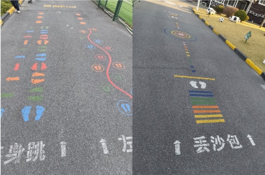 在户外,开展“丢沙包”等随地可见的游戏。