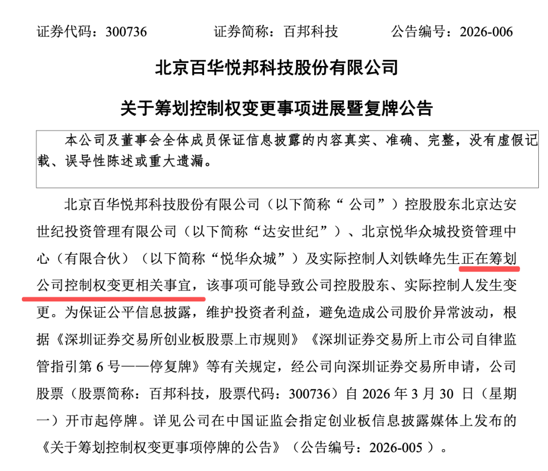 3月31日晚,A股苹果售后做事商百邦科技(300736)清晰方法权变更发达。