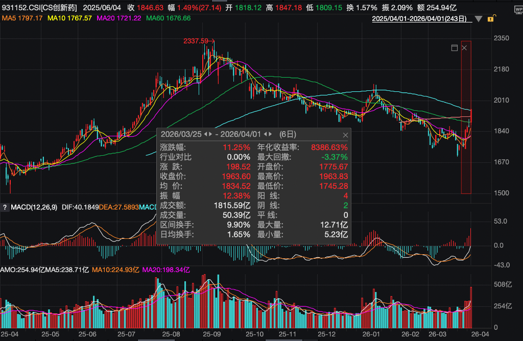 自上周起,编削药板块已露出爆发迹象。中证编削药产业指数昔日一周大涨11%,扭转了自2025年9月以来的抓续震憾调度态势。