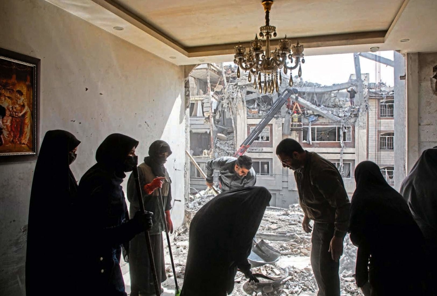 德黑兰市民在瓦砾堆里寻找受难者遗体